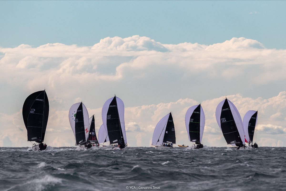 Allo Yacht Club Adriaco, organizzatore di questa rassegna iridata dei record in collaborazione con l’International Melges 24 Class Association e il supporto della Classe Italiana Melges 24, succede che, dopo aver atteso a lungo l’ingresso della brezza, la regata di apertura prende il via in regime di vento in aumento. Raffiche prossime ai 30 nodi hanno raggiunto la flotta in concomitanza con il passaggio alla prima boa di bolina, determinando il disalberamento di due barche: gli Under 25 di Eutsy e i già campioni iridati Corinthian di Taki IV. Allo stesso passaggio si registra la rottura del backstay di Altea (già campione del mondo e ovviamente pretendente al titolo 2025), la perdita del timone di Ora d’Aria, una collisione tra il croato Razjaren, mure a sinistra, e lo statunitense Dark Energy risoltasi con danni per il secondo e la caduta in mare del timoniere di Bogianen, prontamente recuperato senza alcuna conseguenza dal gommone media. Mentre accadeva tutto ciò, l’americano Sentinel di Geoff Fargo volava a oltre 16 nodi verso un meritato successo di giornata, seguito da Nika di Vladimir Prosikhin e da Dark Horse di Cuyler Morris con i due volte campioni iridati Corinthian di Mataran 24 abili nel confermarsi al comando della flotta dei non professionisti.